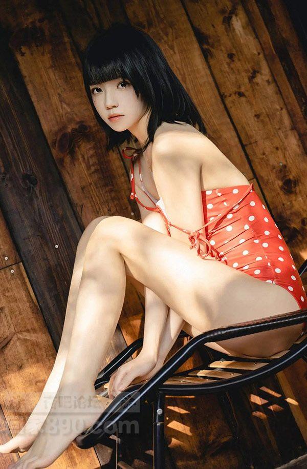 网红清纯美女樱桃喵红色高叉连体衣肌肤白皙【20P】